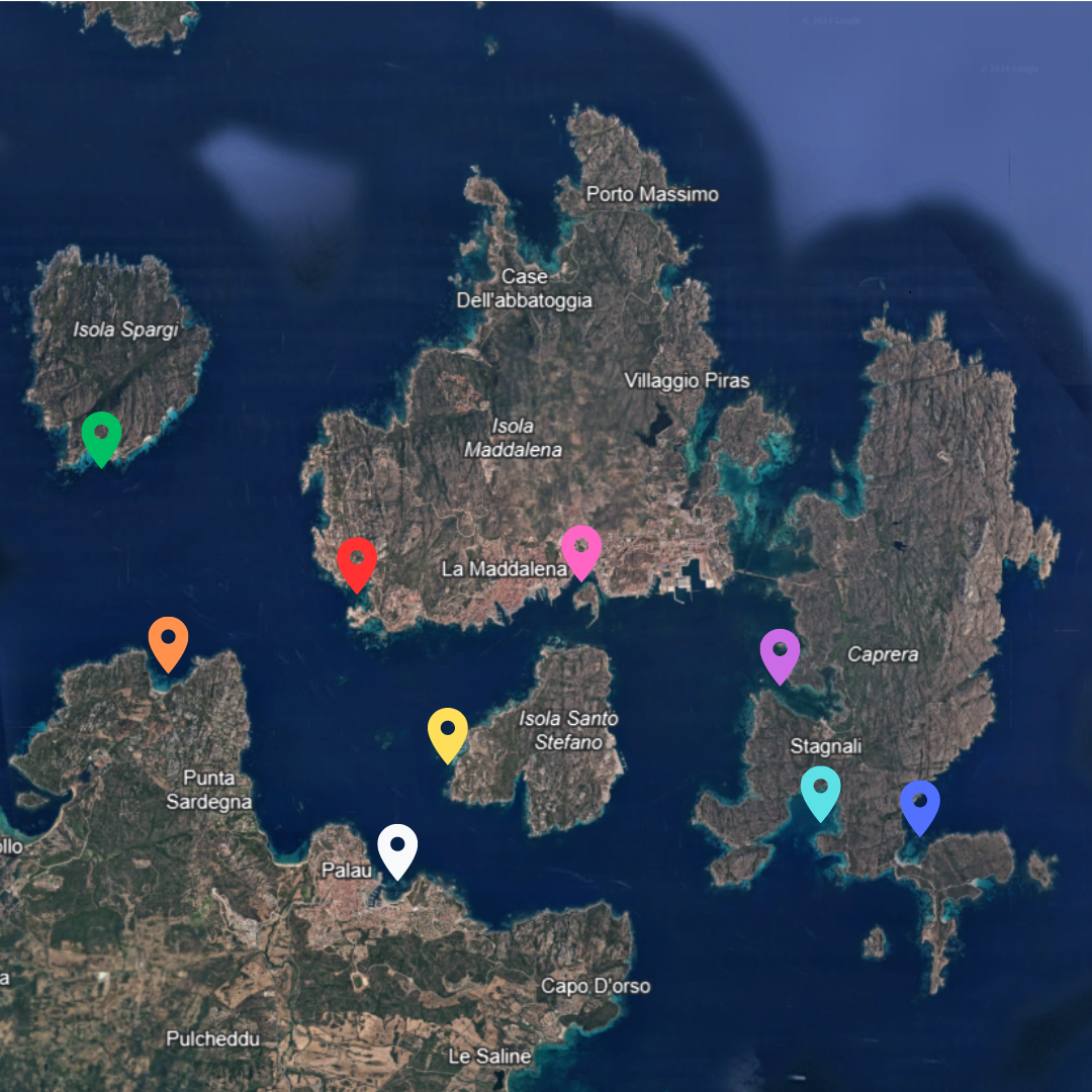 Navigheremo in direzione Cala Corsara, sull’Isola di Spargi, per un primo tuffo; costeggeremo l’isola passando per le sue più belle spiagge tra cui Cala Soraya e Cala Granara.