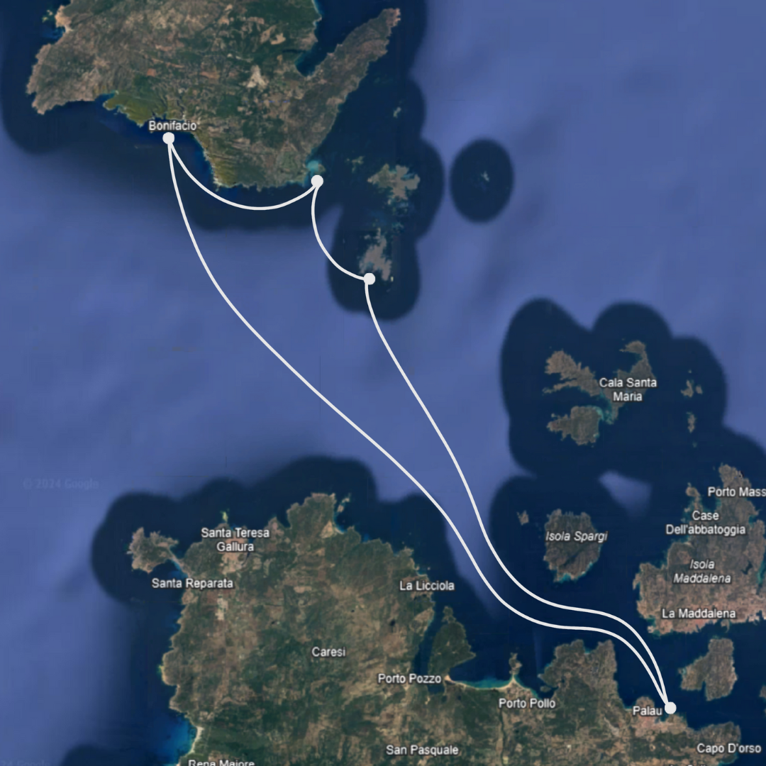 Durante la navigazione attraverseremo le famose bocche di Bonifacio, lasciando alla nostra destra le isole dell’arcipelago.